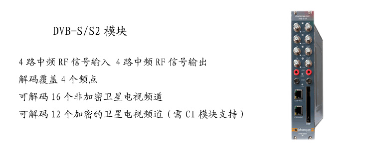 支持DVB-S/DVB-S2/DVB-T/AV多种方式信号输入,支持多种模块组合。